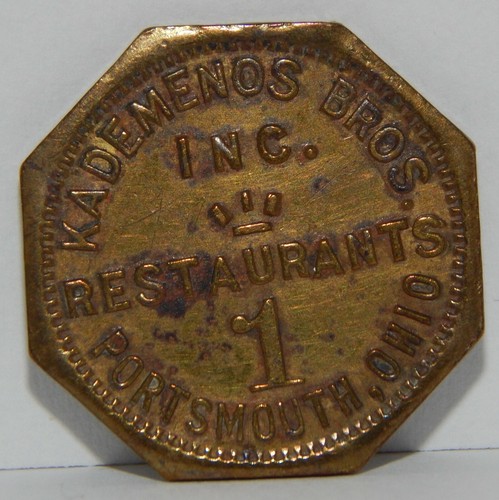 Kademenos Bros Inc Restaurants Portsmouth Ohio Vintage Trade Token Ebay